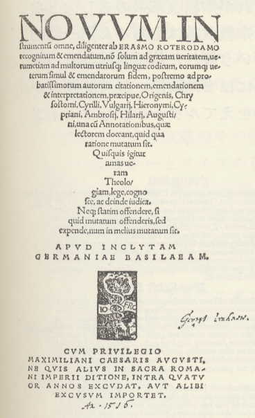 - 下は、エラスムス校訂「新約聖書」【1516】