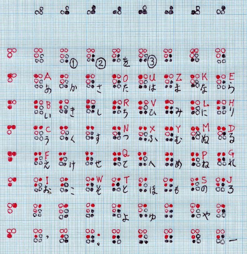 対応は非常に規則的なものなので,点字を知らなくても,ワープロで入力された文字を,IBMのプリンターに打ち出す,英語,日本語のフリーソフトなどはすでに,出回っています.